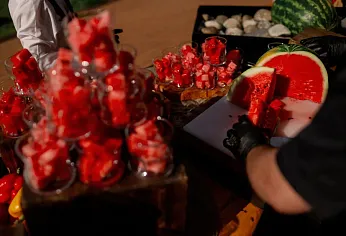 #1277 Фуршет с Анимационными станциями. Анимационные станции холодных закусок, анимационные станции горячих закусок, BBQ, ассорти из сезонных фруктов, анимационные станции десертов, б/а напитки, обслуживающий персонал, обслуживание клиентов напитками, все необходимое оборудование включено в стоимость