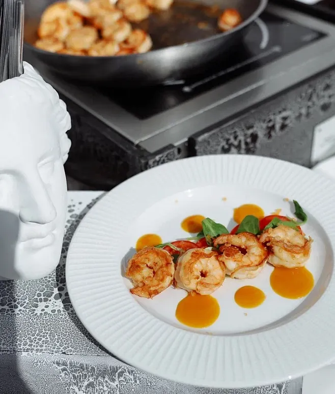 | Демонстрационное приготовление. Тигровые креветки, фламбированные в роме, с гелем из манго и икрой из chili перца | 3000 | 1 | 3000 |