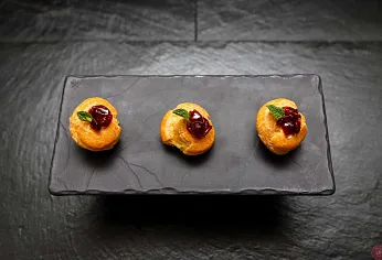 | Томаты Cherry с муссом из тигровых креветок и микрозеленью | 20 | 10 | 200 |