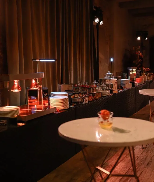 Гастрономическая программа включает ассортимент канапе и сытные сэндвичи на тостовом хлебе, которые дополняются свежими мини-салатами. Горячие закуски сервируются в профессиональных мармитах (chafing dish service), сохраняющих тепло блюд. Вместо тяжелых десертов гостям предлагается легкое ассорти из сезонных фруктов и прохладительные напитки.