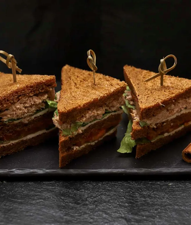 | Мини-сэндвич на тостовом хлебе с тунцом, свежими томатами и творожным сыром | 60 | 15 | 900 |