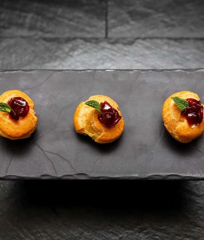 | Авторские профитроли с муссом из слабосоленого лосося, физалисом и белым кунжутом | 20 | 15 | 300 |