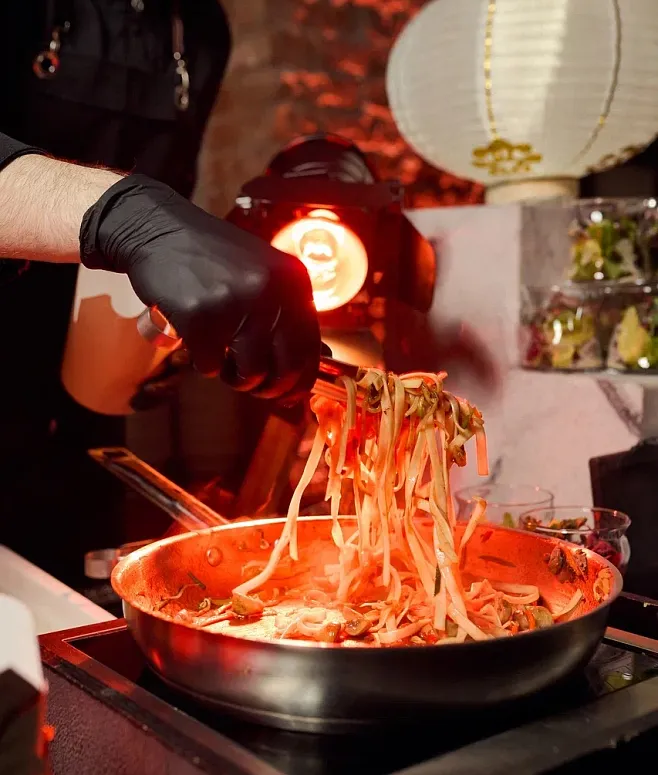 | Wok. Демонстрационное приготовление рисовой лапши с дуэтом тигровых креветок и кальмаров, свежими овощами и устричным соусом | 5000 | 1 | 5000 |