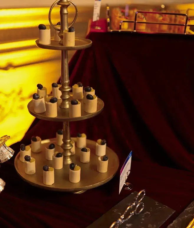 Холодная линия впечатляет: помимо авторских канапе и брускетт, работают анимационные станции холодных закусок. Горячее подается в дуэте форматов: индивидуальные рамекины и ароматные мини-шашлычки. Завершают вечер сезонные фрукты и мини-десерты под аккомпанемент прохладительных напитков.