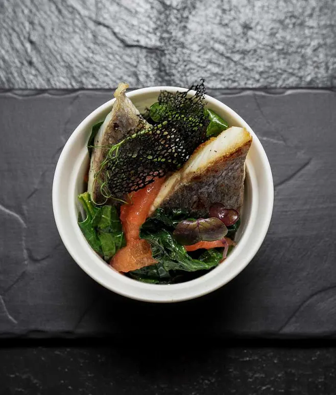 | Дуэт из красной и белой рыбы с креветочным безе и соусом "Unagi" | 80 | 20 | 1600 |