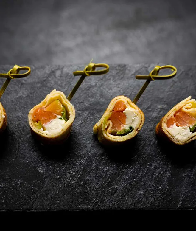 | Ролл из блинчика с муссом из сёмги слабого соления, cream cheese и микрозеленью | 20 | 20 | 400 |