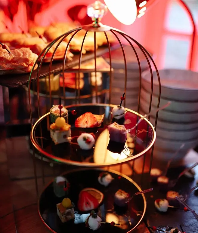 Гастрономическая программа включает популярные канапе и порционные мини-салаты. Особый акцент сделан на уютные вкусовые сочетания: гостям предлагаются ароматные соленые пирожки и горячие закуски, сервированные в профессиональных мармитах chafing dish для сохранения идеальной температуры. Фруктовое ассорти и нежные мини-десерты служат гармоничным завершением трапезы. Официанты обеспечивают своевременную подачу и разлив безалкогольных напитков.