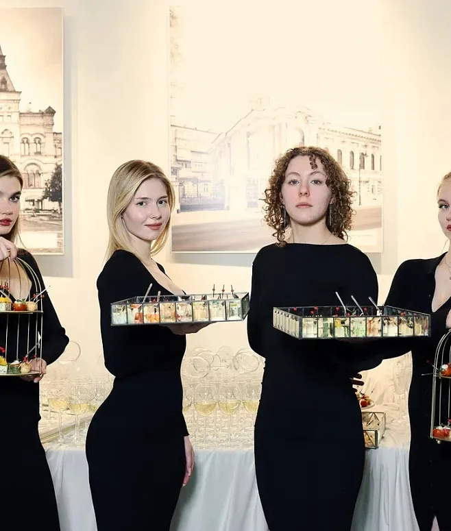 Заказать кейтеринг у нас — значит получить услугу «под ключ». В стоимость уже включены работа обслуживающего персонала, необходимая посуда и профессиональное оборудование, что позволяет провести мероприятие на достойном уровне без лишних организационных забот.#1040 Классический фуршет. Канапе в ассортименте, сэндвичи на тостовом хлебе, мини-салаты, горячие закуски chafing dish service, ассорти из сезонных фруктов, б/а напитки, обслуживающий персонал, обслуживание клиентов напитками, все необходимое оборудование включено в стоимость