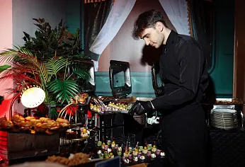 Выездной ресторан берет на себя полное сопровождение фуршета: профессиональная команда обеспечивает своевременную подачу блюд и напитков, внимательно следит за комфортом каждого гостя. Стоимость включает всё оборудование, сервировку и работу персонала — вы получаете готовое решение «под ключ» для успешного проведения вашего мероприятия.#1062 Классический фуршет. Канапе в ассортименте, сэндвичи на тостовом хлебе, мини-салаты, горячие закуски chafing dish service, ассорти из сезонных фруктов, мини-десерты, б/а напитки, обслуживающий персонал, обслуживание клиентов напитками, все необходимое оборудование включено в стоимость