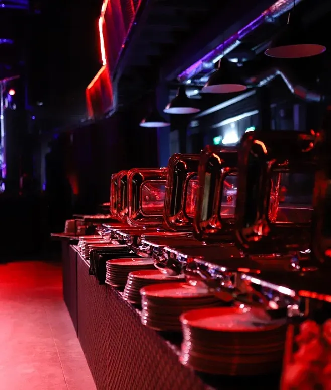 Меню богато разнообразными закусками: изящные канапе, сэндвичи и мини-салаты. Горячая часть представлена ароматными мини-шашлычками и основными блюдами в формате chafing dish service, что сохраняет их температуру. Десерты, фрукты и прохладительные напитки гармонично дополняют трапезу.