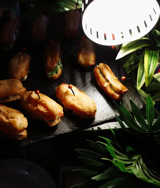 Гастрономическая коллекция впечатляет оригинальностью: помимо изысканных канапе и салатов, мы предлагаем воздушные сэндвич-эклеры. Горячая линия отличается разнообразием: сочные позиции на шпажках и утонченные закуски, запеченные в керамических рамекинах. Композицию завершают фрукты, десерты и прохладительные напитки.