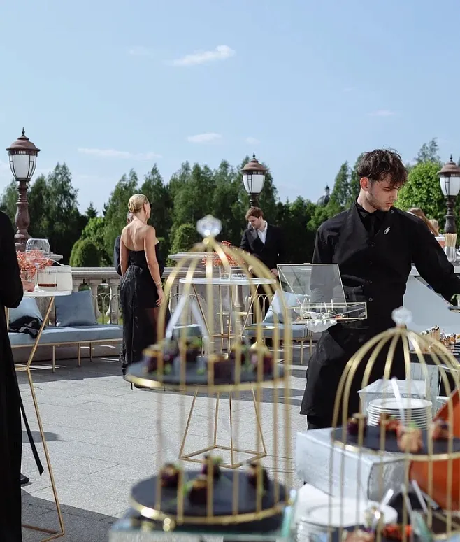 Гастрономическая программа начинается с изысканных канапе и авторских сэндвич-эклеров с нежными начинками — элегантной альтернативы привычным закускам. Легкие мини-салаты предваряют подачу горячих блюд: сочные закуски запекаются в индивидуальных рамекинах, а ароматные мини-шашлычки добавляют меню сытности и разнообразия. Завершают вечер отборные сезонные фрукты и коллекция мини-десертов, сопровождаемая премиальными безалкогольными напитками.
