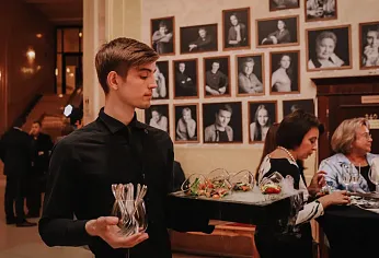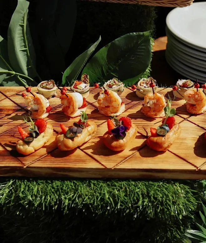 Гастрономическая программа начинается с изысканных канапе и легких мини-салатов. Горячая линия впечатляет сочными мини-бургерами и премиальными позициями BBQ. Настоящим украшением вечера становятся анимационные станции десертов, где сладости оформляются на глазах у публики. Меню дополняют сезонные фрукты и прохладительные напитки.