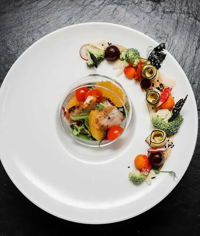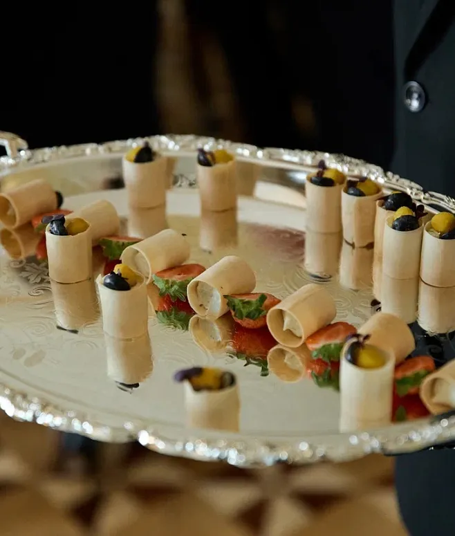 Холодные закуски представлены коллекцией изысканных канапе, брускетт и мини-салатов. Особый статус событию придают анимационные станции с горячими блюдами, а также эффектная подача угощений в порционных рамекинах и через систему chafing dish service. Завершают композицию отборные сезонные фрукты, авторские десерты и освежающие напитки.