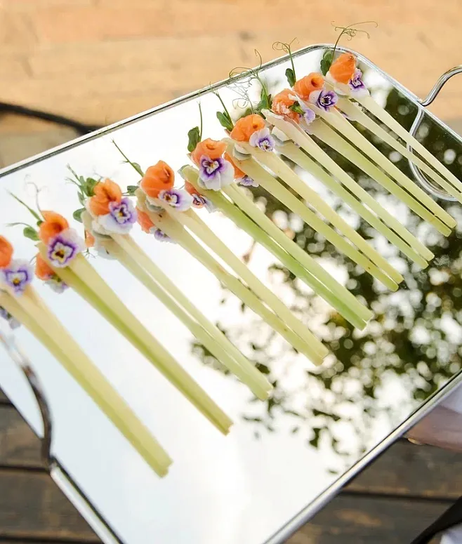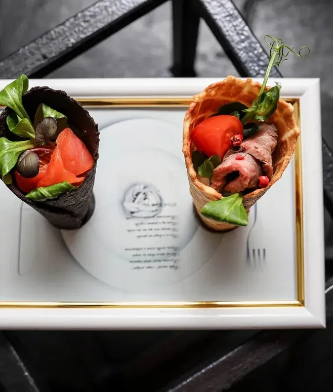 Меню впечатляет разнообразием: от утонченных канапе и брускетт до легких салатов. Главный акцент сделан на интерактиве — гостей ждут анимационные станции с холодными и горячими закусками, а также элегантная подача блюд в порционных рамекинах. Завершают вечер авторские мини-десерты и безалкогольные напитки.