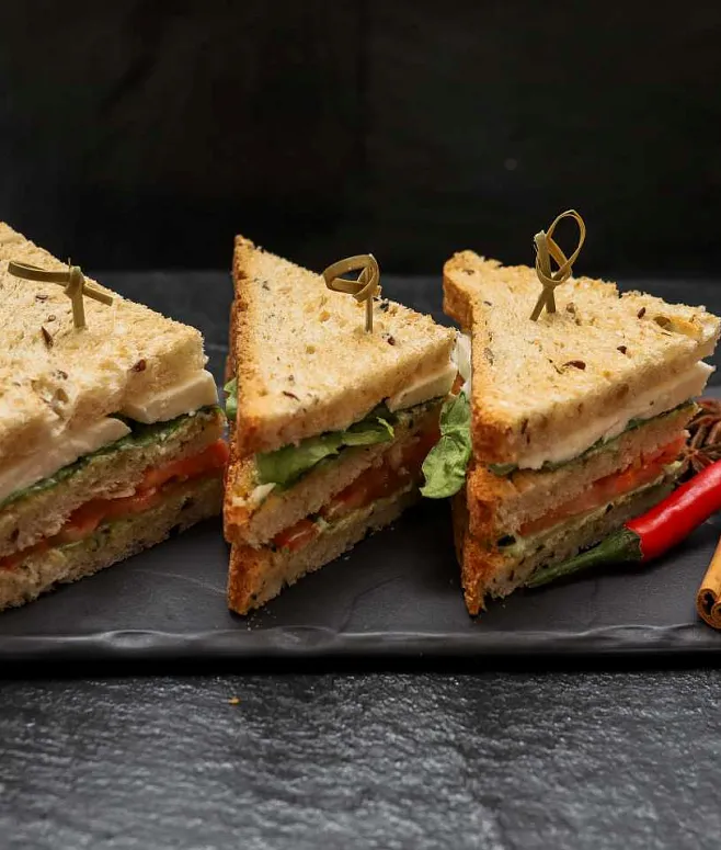 | Мини-сэндвич на тостовом хлебе с индейкой, свежими томатами, салатом айсберг и горчичным соусом | 60 | 40 | 2400 |