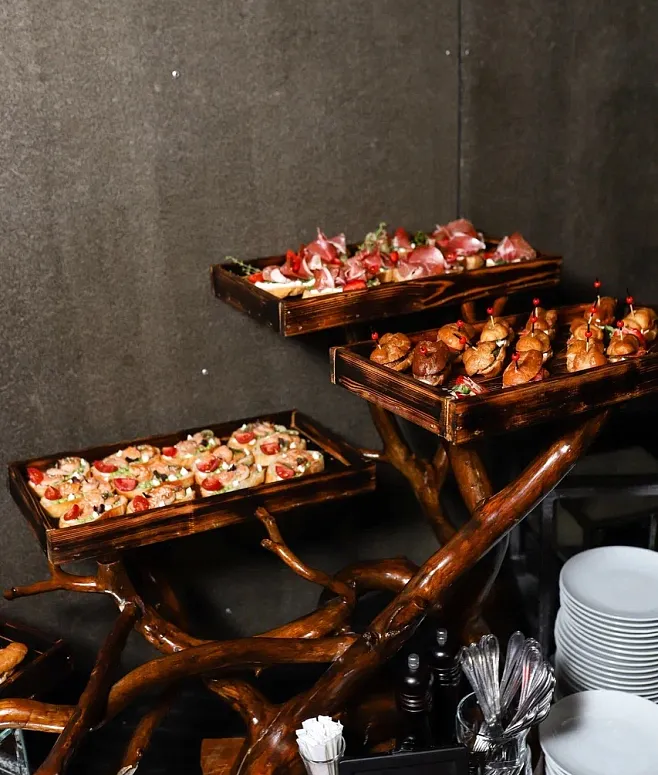 #1118 Классический фуршет. Канапе в ассортименте, брускетты, мини-салаты, BBQ, ассорти из сезонных фруктов, мини-десерты, б/а напитки, обслуживающий персонал, обслуживание клиентов напитками, все необходимое оборудование включено в стоимость
