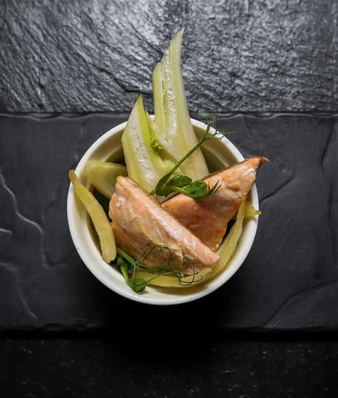 | Филе форели, маринованной в белом вине и свежем тимьяне, с карамелизированным фенхелем, цукини-гриль и имбирным соусом | 100 | 60 | 6000 |