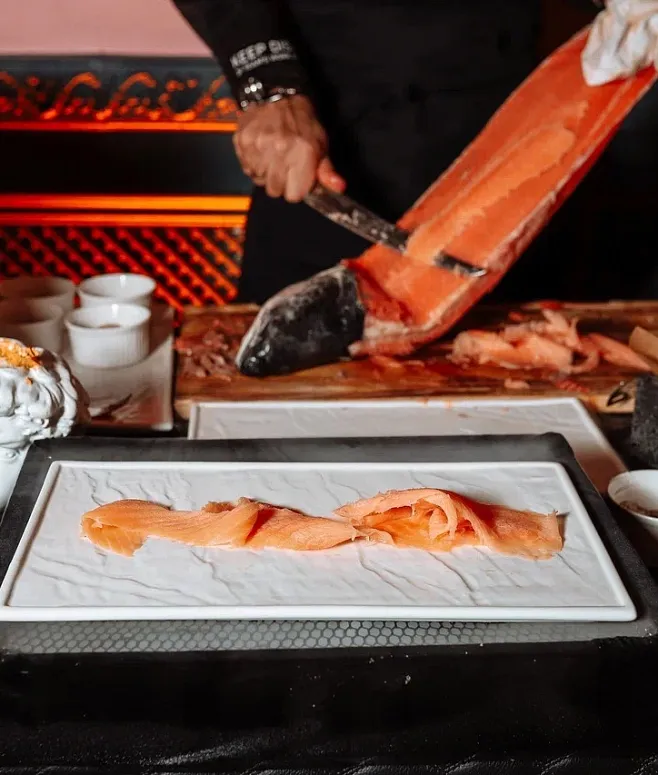| Строганина из Якутского Муксуна, подается с солью с травами, пряным масло и лимоном - 4 небольшие рыбы | 4000 | 2 | 8000 |