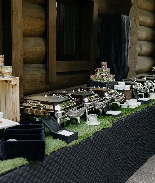 Основа гастрономического сета — аппетитные сэндвичи и легкие мини-салаты. Горячие закуски сервируются в профессиональных мармитах, что поддерживает их температуру весь вечер. Меню фуршета сбалансировано свежими фруктами и десертами. Даже если вы не планируете использовать сложные анимационные станции, этот формат обеспечит гостям достойное и сытное угощение.
