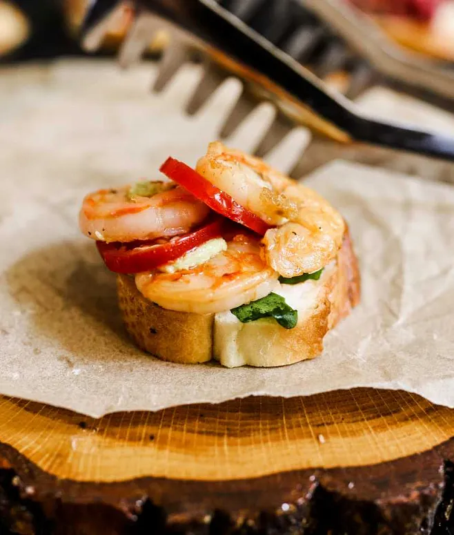 | Брускетта с Тигровыми креветками, муссом из авокадо и томатами cherry | 60 | 10 | 600 |