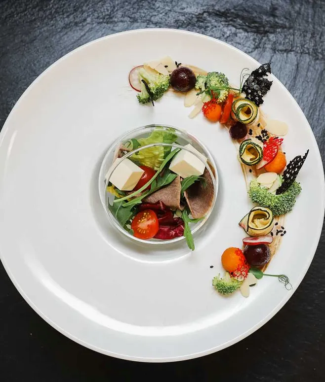 | Телячий язык, с сыром Feta, свежими овощами, листьями салата айсберг и соусом из зеленого базилика | 100 | 10 | 1000 |