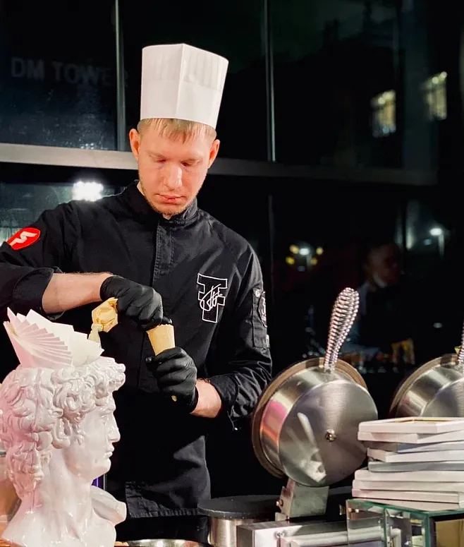 Классический фуршет в стиле Street Food дополняют анимационные станции: холодные и горячие подачи готовятся при гостях; в составе — канапе и мини-закуски, мини-салаты, сезонные фрукты, десертные станции и б/а напитки.